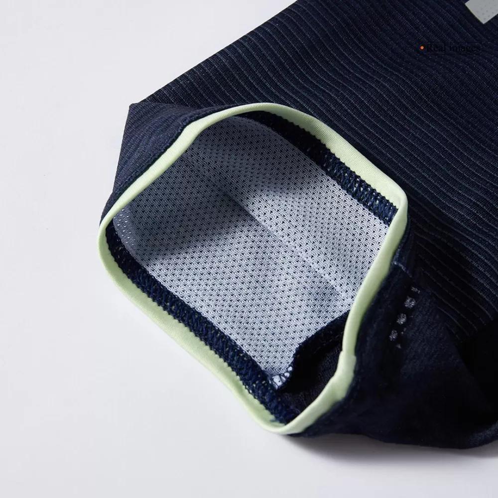 يتميز تيشيرت ريال مدريد الاحتياطي باللون الكحلي، مع تفاصيل النادي وشعار أديداس باللون الرصاصي، ليضفي مزيدًا من الجمالية والأناقة على التصميم